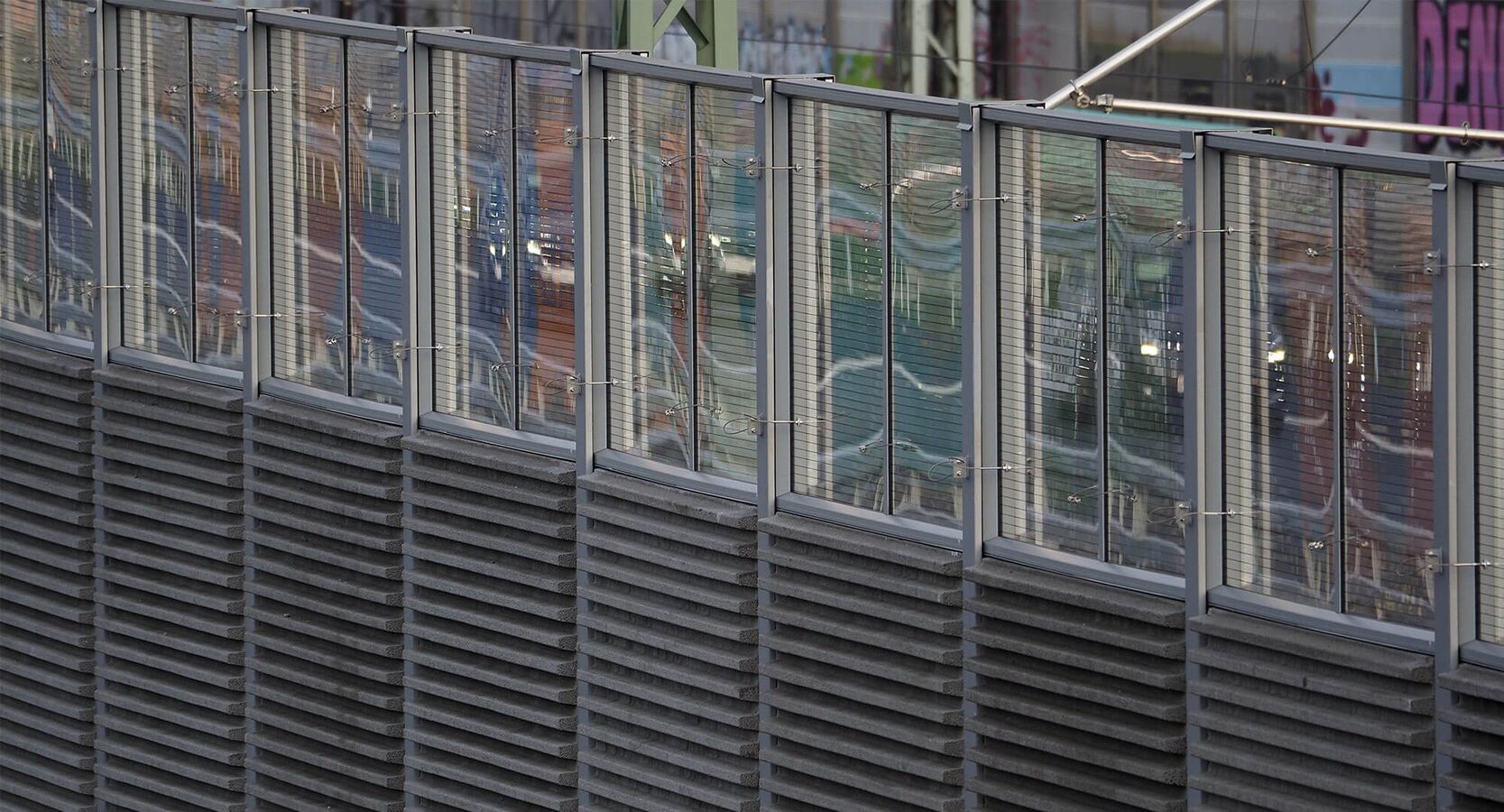 Die horizontale Ausrichtung der Schallschutzfläche kann nur bei exakter Ausrichtung optisch überzeugen. Das ist hier eindrucksvoll durchgeführt worden.