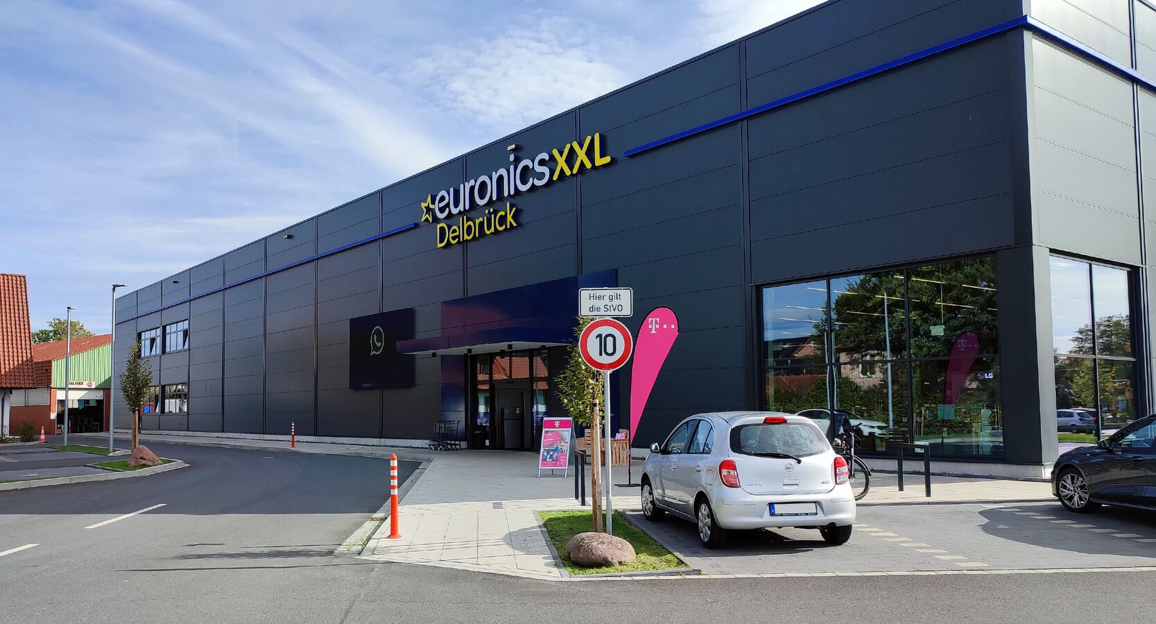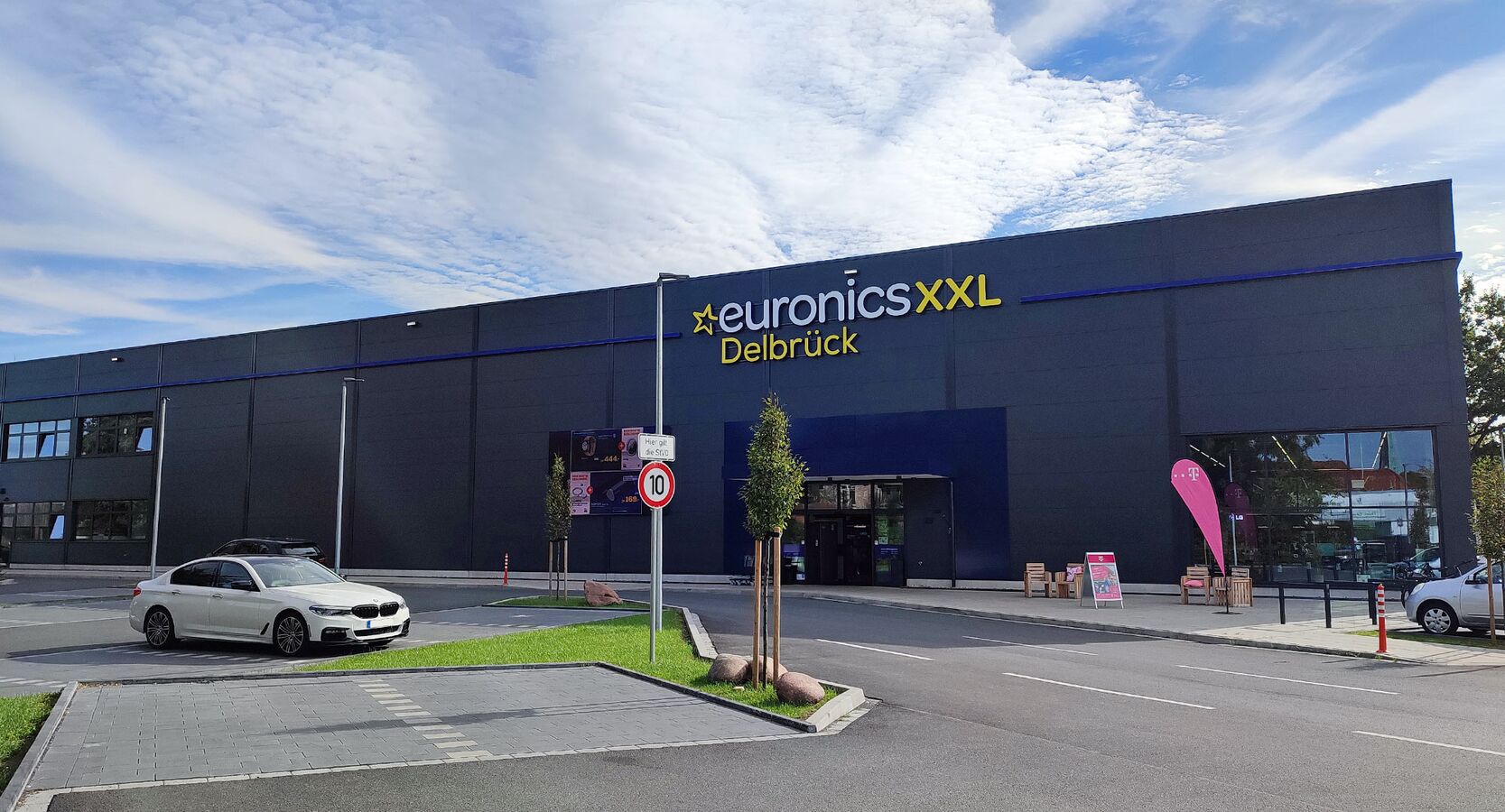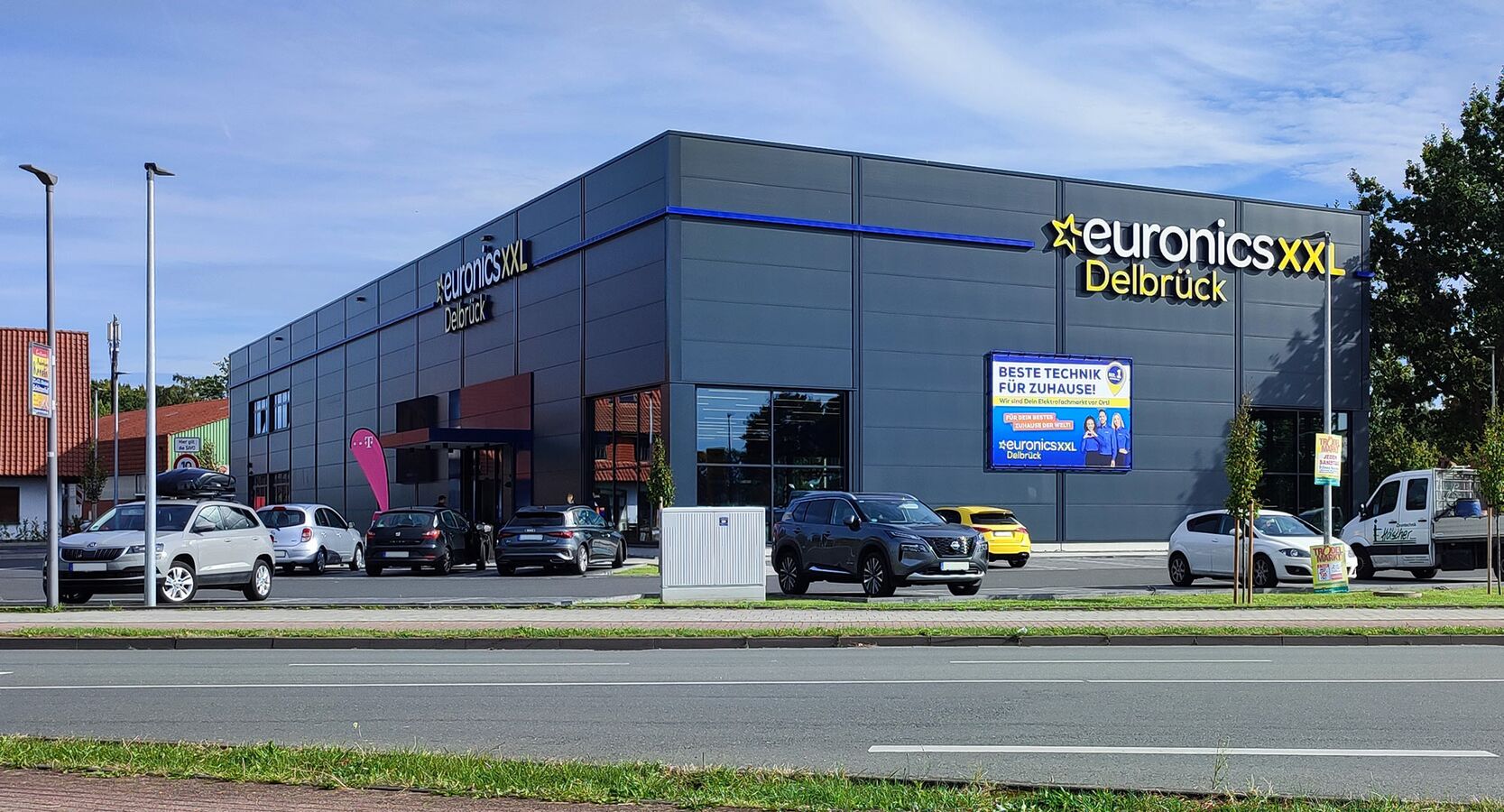 Neubau einer Niederlassung eines Euronics-Marktes in Delbrück mit Büroeinbau.