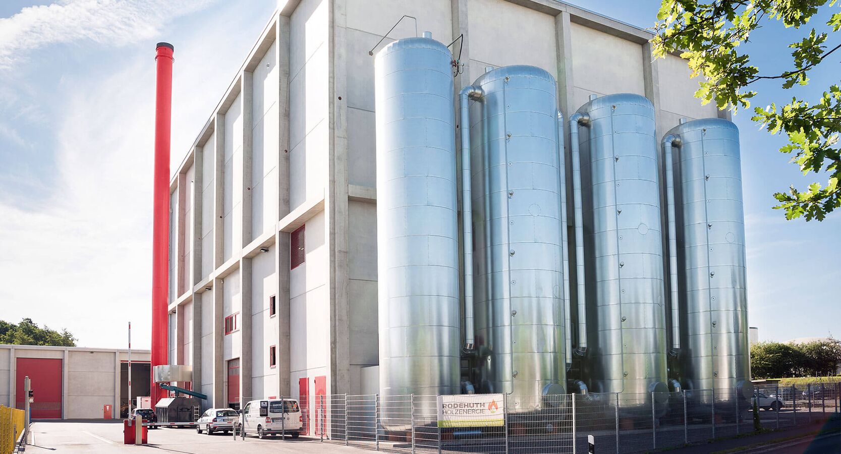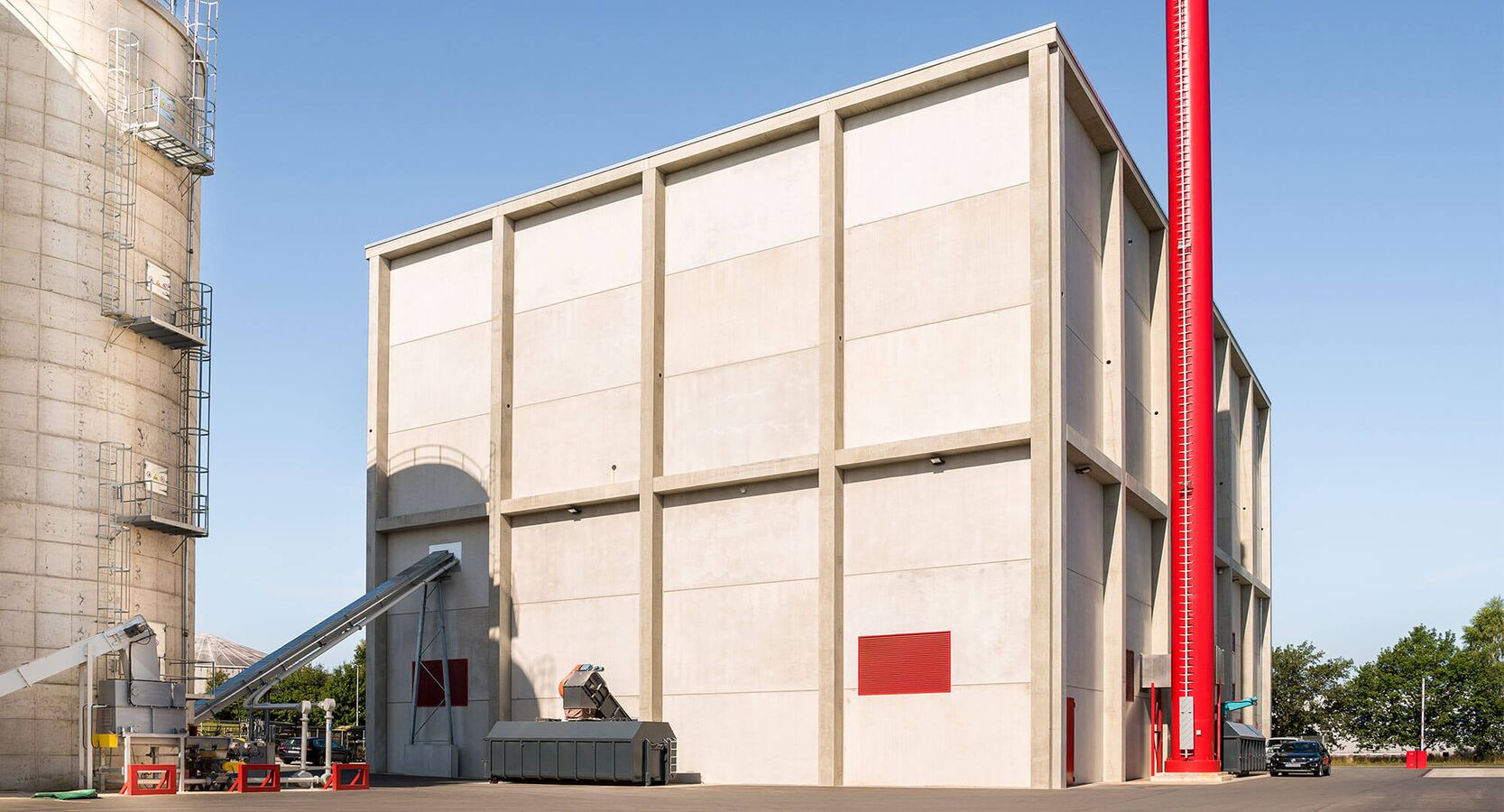 EUDUR-Bau erstellte in nur 9 Monaten das Heizhaus mit angrenzender Holzhackschnitzellagerhalle. Das Heizhaus mit einer Bauhöhe von 24,40 m und einer Grundfläche von 42 x 28 m stellte eine besondere Herausforderung dar. EUDUR-Bau errichtete im ersten Monat die Außenstützen über der 50 cm dicken, vorab erstellten Sohle mit Gründungskörpern. Im Anschluss wurde die Turbine/Brennkammer mit gesamter Technik aufgebaut und die EUDUR-Stahlbetonkonstruktion im 2. Montageeinsatz um das Kraftwerk herum montiert.