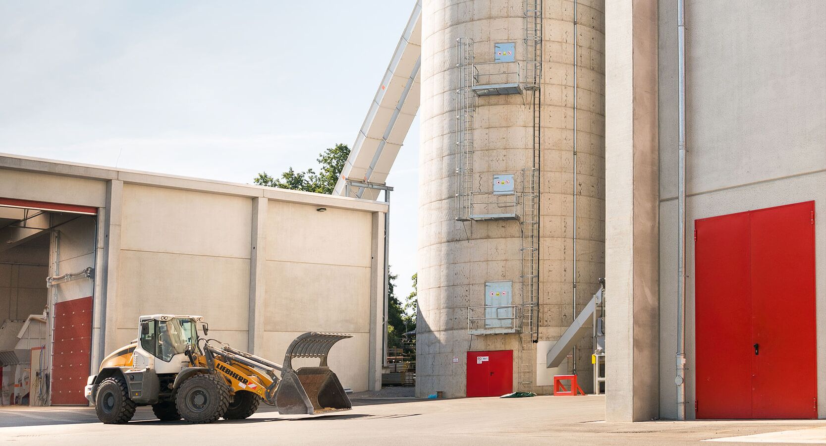 Stützen, Binder und Balken wurden mit bis zu 37,80 t Einzelgewicht mit 2 Kränen im Tandemhub verbaut. 180 m² Heizhaus mit zus. 1.000 m² Holzschnitzellagerhalle Spänesilo, für die ca. 450 Stahlbeton-Fertigteile hergestellt wurden.