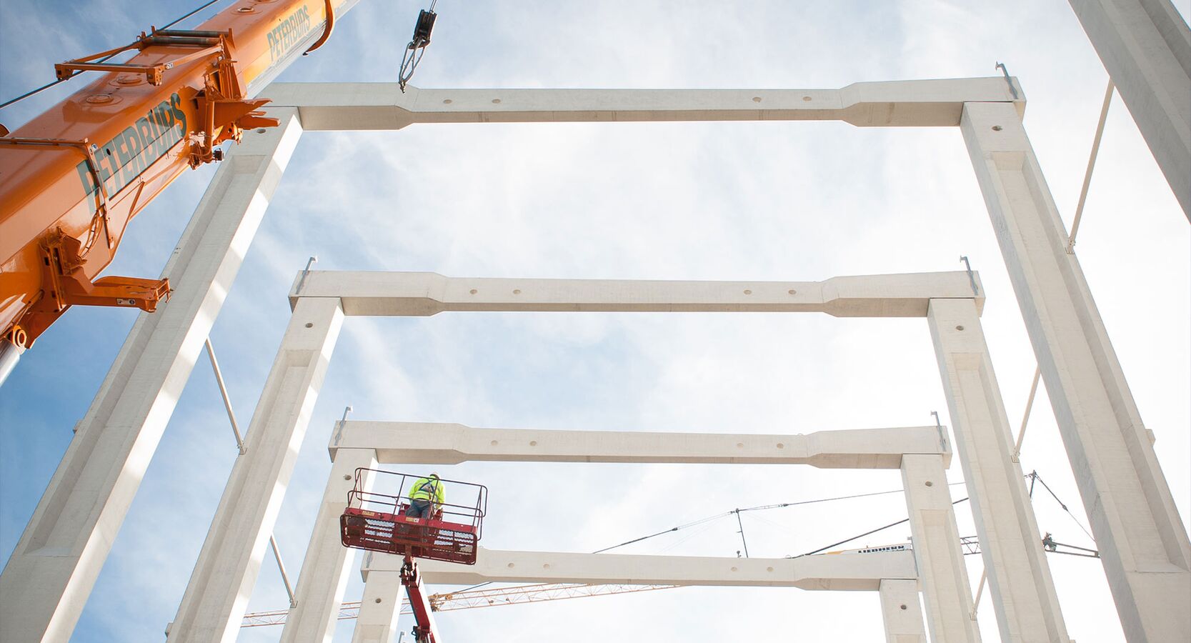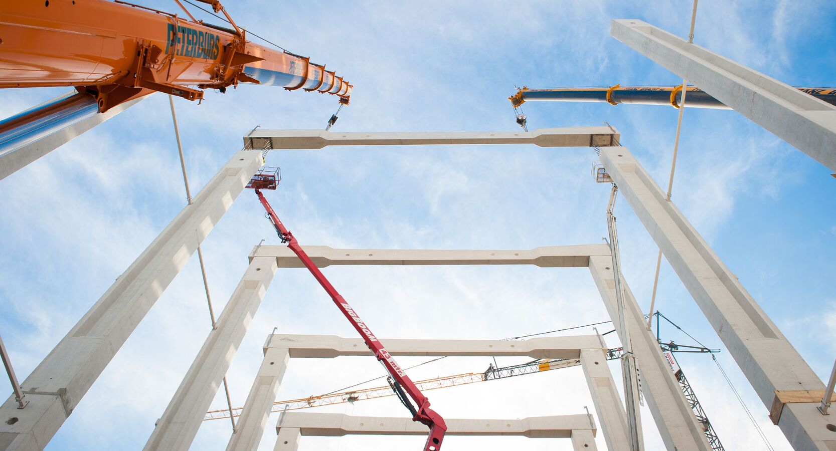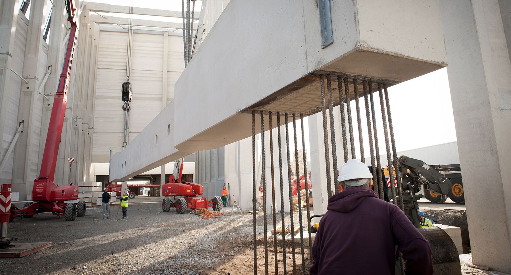 Hochregallager mit überlangen zweigeteilten Stahlbetonstützen