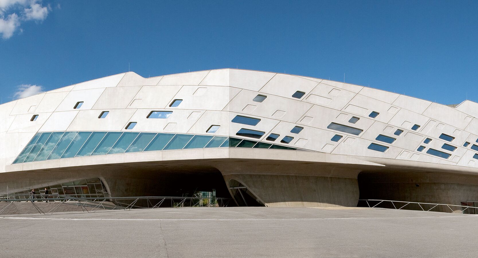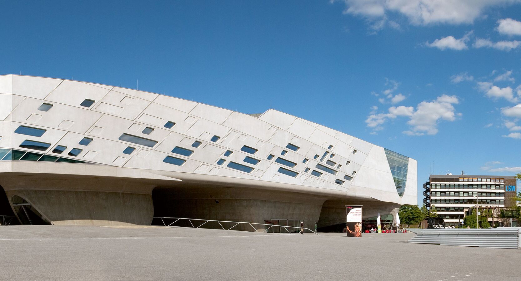 Das Phaeno Science Center entstand unter Federführung von Architektin Zaha Hadid. Der Entwurf stellte mit seinen großformatigen Platten höchste Ansprüche an den Schalungsbau für eine Sichtbetonqualität (SB4). Die Fertigteilplatten wurden in zwei Richtungen geneigt und zum Teil in sich geknickt hergestellt und montiert.
