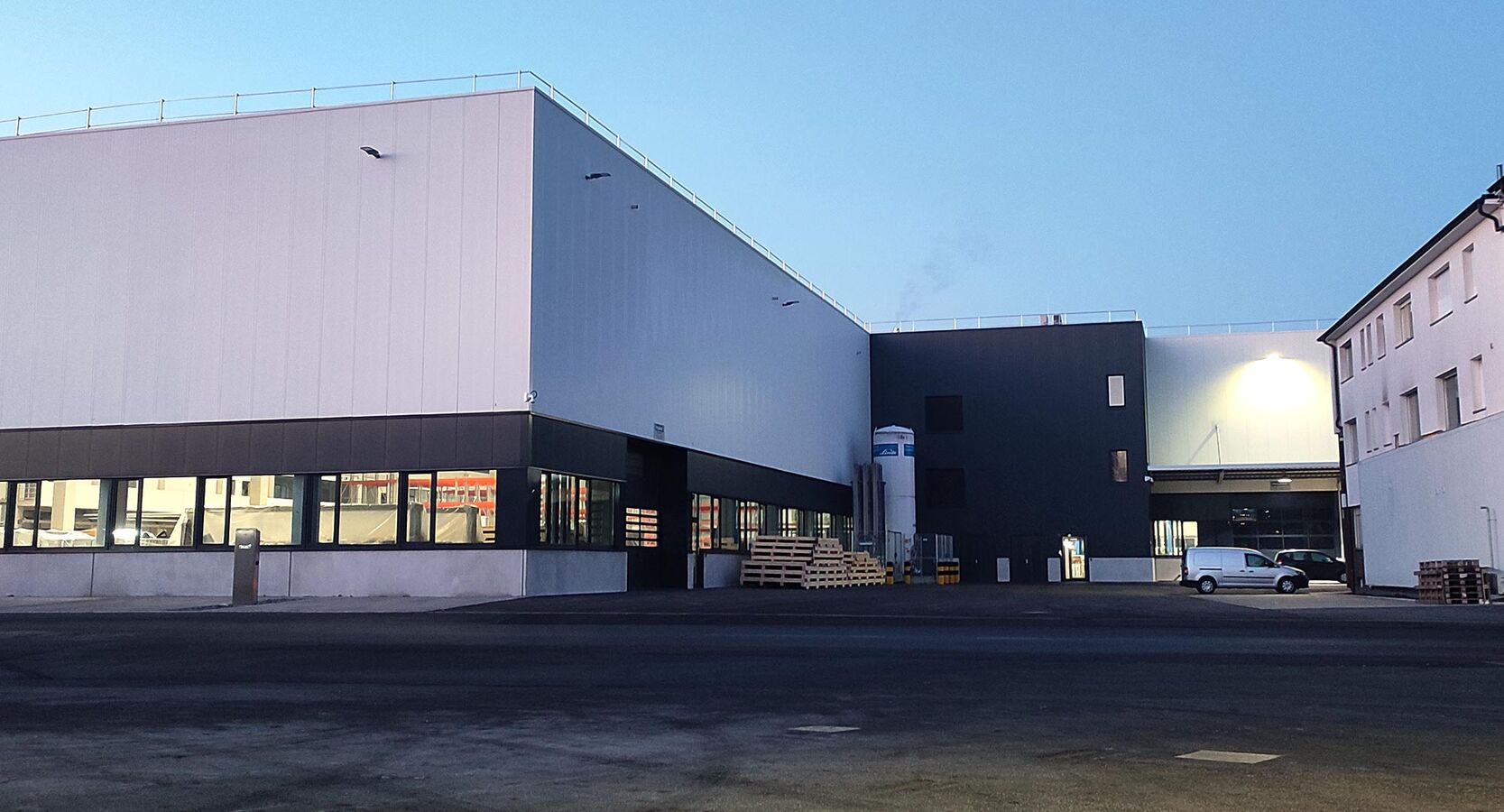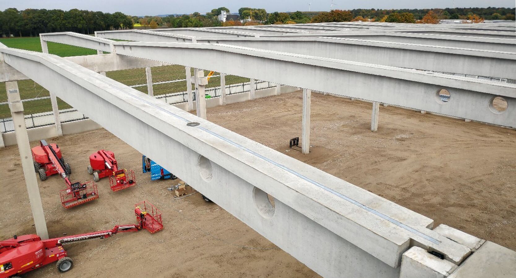 Neubau einer Montage-/Lagerhalle in zwei Bauabschnitten. Auf insgesamt mehr als 7.800 m² befindet sich die Schweißerei, Lackiererei, das Sortierzentrum und die Versandfläche sowie neue moderne Aufenthalts- und Büroräume für die Mitarbeiter.